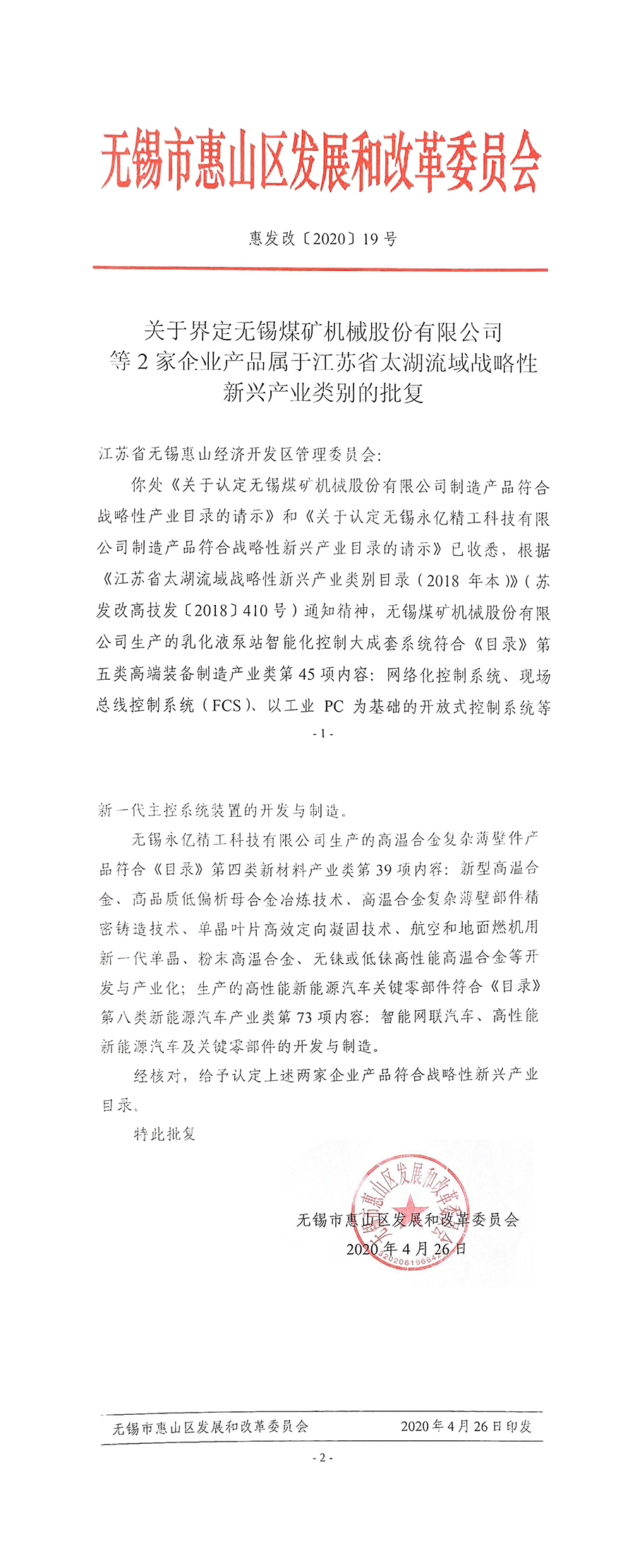 熱烈祝賀無錫煤機生產的乳化液泵站智能化控制大成套系統申報“江蘇省太湖流域戰略性新興產業類別”成功,并獲批文。特此祝賀!